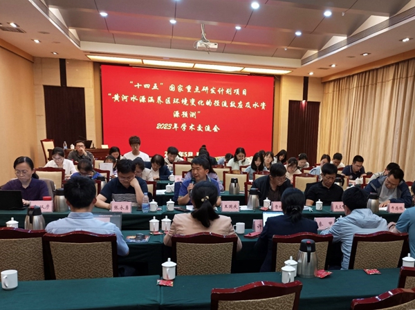 In order to promote the implementation of Runoff Effects and Water Resources Prediction Under the Context of Environmental Changes in the Yellow River Water Source Conservation Area, a project under the National Key Research and Development Program during the 14th Five-Year Planning period, the first academic exchange meeting for the year of 2023 was held in Zhengzhou from May 29 to 30, 2023. More than 60 participants attended the meeting, including Chief Scientist Prof. WANG Guoqing, subject leaders and technical backbones of the project.